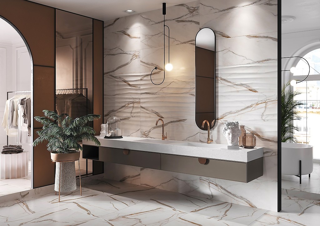 Doskonale czujesz się w klasycznych przestrzeniach urządzonych ze smakiem? To przykład ponadczasowo pięknej kolekcji Cosima, wykonanej z majestatycznego kamienia, który dzięki wykorzystaniu szkliwa satynowego do złudzenia przypomina naturalny materiał występujący w przyrodzie. Dzięki tym płytkom we własnej łazience możesz poczuć się jak w monumentalnej starożytnej budowli. Ich grafikę w postaci miedzianych oraz szarych żył docenią szczególnie wymagający klienci, którzy z pewnością zechcą podkreślić je umiejętnie dobranymi dodatkami, tworząc tym samym unikalne połączenie.