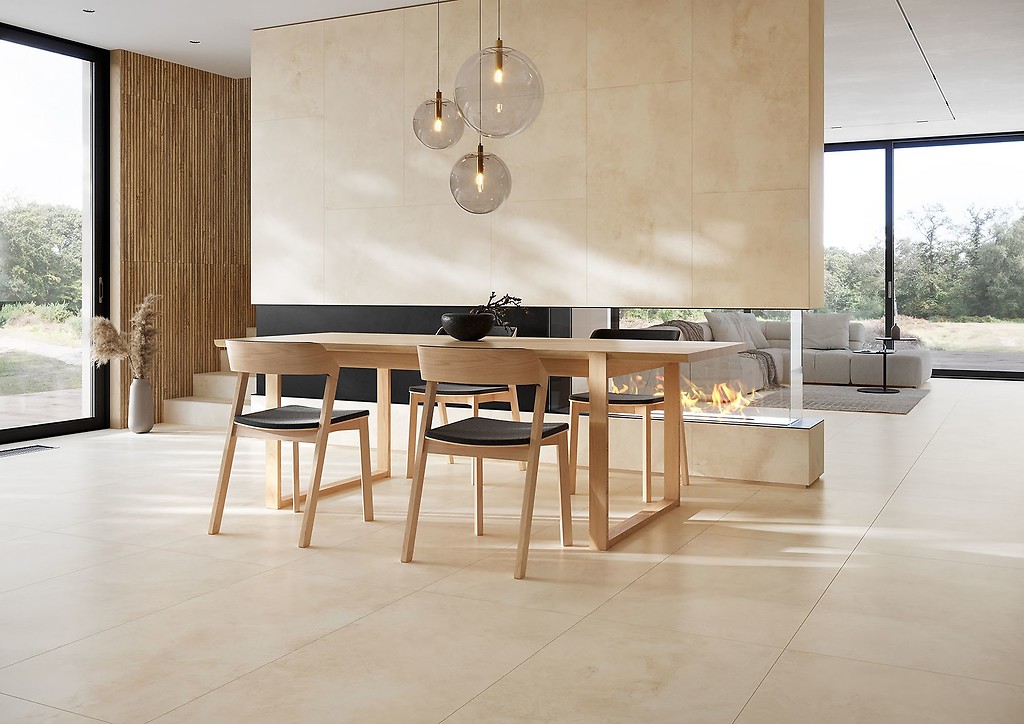Quenos to beton o delikatnym, stonowanym designie, pasujący do każdego wnętrza. Różnorodność formatów to sposób na niebanalne aranżacje ścian i podłóg pomieszczeń w całym domu.