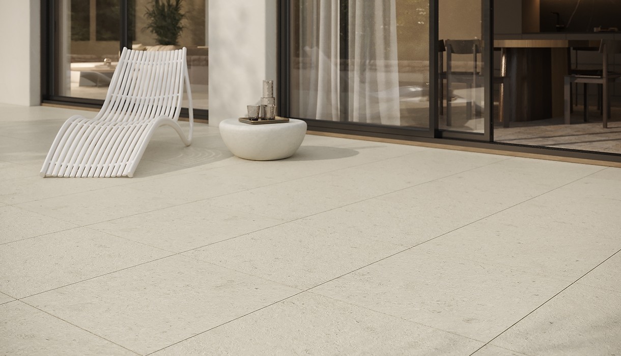 Płytki JURA LANDSCAPE 2.0 oddają urok prawdziwego kamienia, tym samym wprowadzając do aranżacji harmonię i elegancję. Płytki dostępne są w rozmiarze 59,3×59,3 cm, a trzy neutralne odcienie – kremowy, bazaltowy i szaro-beżowy – świetnie wpisują się w minimalistyczne przestrzenie tarasów i balkonów. Matowa powierzchnia podkreśla delikatną, niejednolitą fakturę, a mrozoodporność gwarantuje trwałość przez lata. Kolekcja dobrze współgra z drewnem, metalem oraz dużymi przeszkleniami, tworząc spójne połączenie wnętrza z ogrodem. Płytki stanowią doskonałe tło dla porannego śniadania na tarasie lub wieczornego spotkania przy grillu. Ich subtelny charakter pozwala na komponowanie z bujną roślinnością, podkreślając naturalny klimat zieleni. Dzięki wyważonej palecie kolorów i uniwersalnemu charakterowi płytki te będą funkcjonalnym i stylowym wyborem na długi czas.