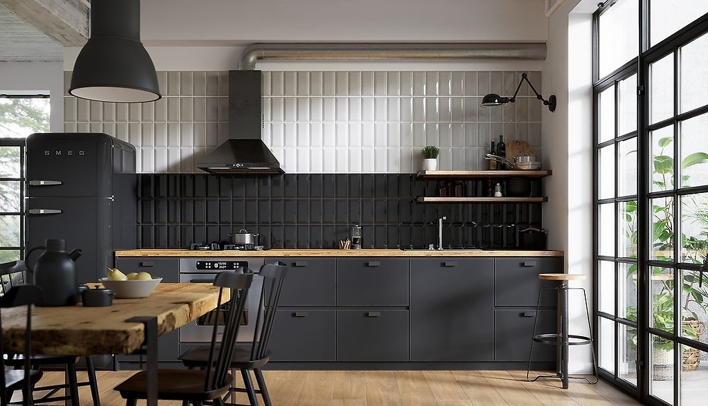 W dużym i otwartym pomieszczeniu w stylu loftowym cegła nie ogranicza się do fragmentu ściany. Proste, jasne płytki ceramiczne z serii SALSA & METRO STYLE od Opoczna w połączeniu z drewnem, metalem i otoczone nieskazitelną bielą lub surowym betonem stworzą osobliwy klimat. Nie zapomnij o unikalnych, osobistych akcentach, które podkreślą niepowtarzalny charakter Twojej kuchni.