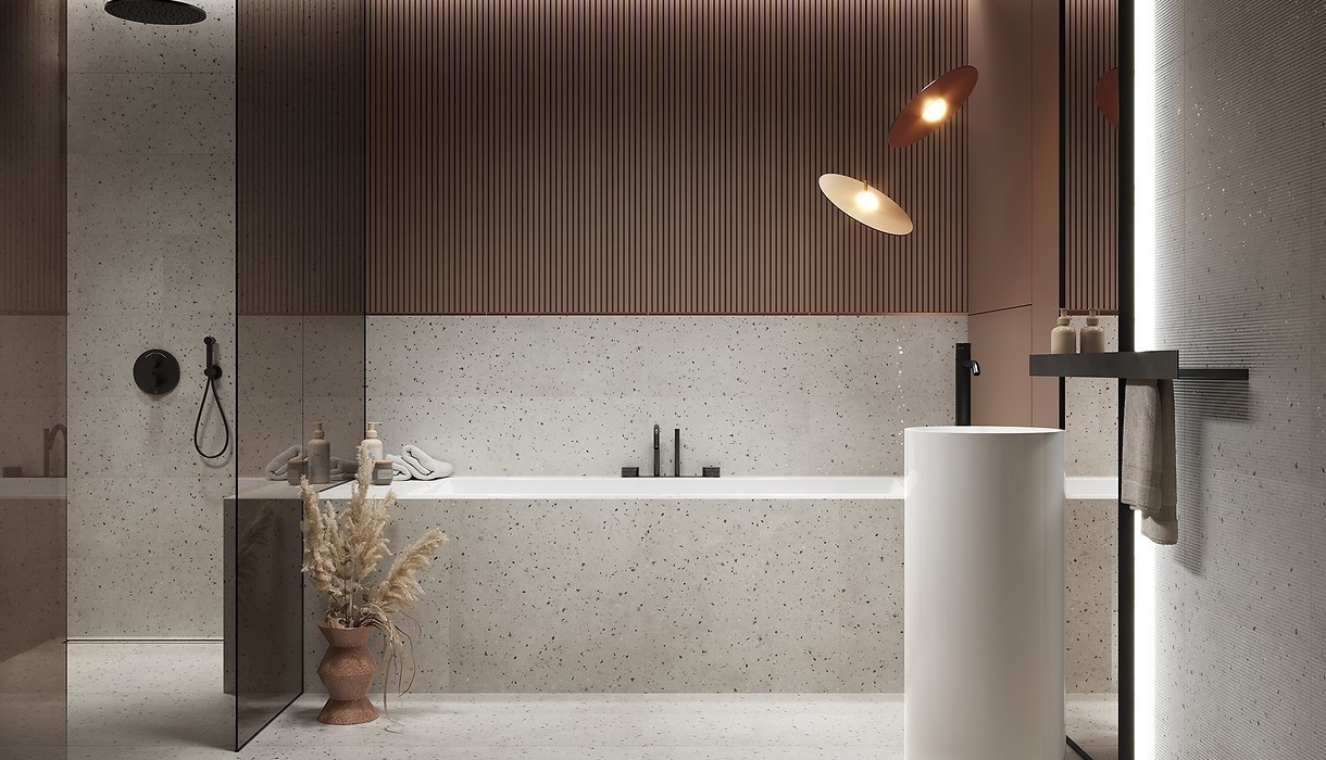 W przypadku pomieszczeń w nowym budownictwie, jeżeli tynki zostały prawidłowo wykonane, to nierówności ścian są niewielkie. Nie stanowią one dużego problemu i mogą być wyrównane nawet za pomocą zaprawy klejowej w trakcie mocowania płytek. Niezwykle ważne jest, aby korzystając z poziomicy upewniać się czy powstająca okładzina ma idealnie równą powierzchnię. Jeżeli planujemy położyć płytki na gotowe tynki gipsowe, podłoże powinno być wcześniej zagruntowane. Z kolei w miejscach narażonych ma kontakt z wodą zawsze należy wykonać również hydroizolację, czyli położyć tzw. folię w płynie. Nieco większe nierówności i ubytki w podłożu wyrównamy za pomocą masy szpachlowej. Nowe mieszkania chętnie urządzamy nowocześnie, ale zależy nam również na tak zwanym efekcie „wow”. Wówczas szukamy materiałów wpisujących się w aktualne trendy, a jednocześnie zwracających uwagę. Te kryteria z pewnością spełniają gresy w dużych formatach z serii Grand Concept. W łazience wspaniale zaprezentują się te z kolekcji Color Crush – zrobią wrażenie pięknym odcieniem granatu. Gresy możemy z powodzeniem zastosować również w innych pomieszczeniach. Te z kolekcji Vulcanic Dust o wzorze kamienia w ciepłych odcieniach beżu znakomicie ozdobią ścianę za łóżkiem w sypialni, a gresy w optyce betonu z kolekcji Night Shade sprawią, że salon zyska niebanalny wygląd.