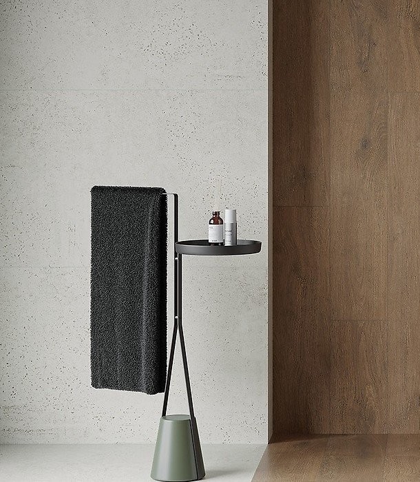 Betonowa podłoga i szare drzwi dobrze wpisują się w industrialny styl, który często wykorzystuje surowe materiały i neutralne kolory. To połączenie sprawdzi się przede wszystkim w nowoczesnych i minimalistycznych aranżacjach. Oba elementy mogą występować w odcieniach szarości, pojawia się jednak różnica w teksturze. Wtedy gładkie, szare drzwi będą kontrastować z szarym, surowym betonem. Jeśli płytki z efektem betonu mają ciepły, beżowy odcień, jak w kolekcji First Row, wówczas będą z nimi dobrze komponować szare drzwi o ciepłych tonach. Przewaga uniwersalnej szarości lub neutralnego beżu we wnętrzu pozwala na łatwe dopasowanie innych elementów wystroju, takich jak meble, oświetlenie czy dobrze komponujące się z neutralną paletą kolorowe dodatki.
