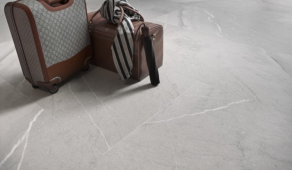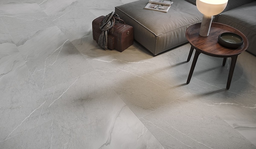 Ściany możemy pomalować po prostu farbą i tak pozostawić, uzupełniając ewentualnie o dodatki w postaci obrazów i plakatów, luster czy też innych dekoracji ściennych. Wśród najnowszych trendów wnętrzarskich znajdziemy jednak beton, który jest w modnym kolorze, reprezentuje szarą paletę barw. Warto to wykorzystać, planując aranżację salonu z uwzględnieniem ściany dekoracyjnej. Wielkoformatowe płytki w kolorze surowego betonu, jak Grava Grey czy bardziej w kierunku kamienia Newstone Grey , bardzo dobrze podkreślą ścianę z telewizorem, przy której stanęła szafka z metalowym stelażem i drewnianymi frontami. Eklektyzm w architekturze jest dzisiaj bardzo pożądany, dlatego beton w salonie może być też elementem kącika wypoczynkowego z duża sofą w kolorze pastelowym i stolikiem kawowym wykonanym z palet. Pozostałe ściany możemy pokryć farbą w jaśniejszym odcieniu szarości lub zdecydować się na kontrasty i np. delikatną miętę. Ciekawy efekt uzyskamy, wybierając również płytki w unikalnym kolorze nietypowego szarego marmuru Lake Stone. Są w jasnym kolorze z delikatnym żyłkowaniem, inspirowane szlachetnym kamieniem nadają stylizacji elegancji. Połączysz je z kolorem Classic Blue lub z czystą bielą, aby stworzyć monochromatyczne wnętrze z odrobiną luksusu.