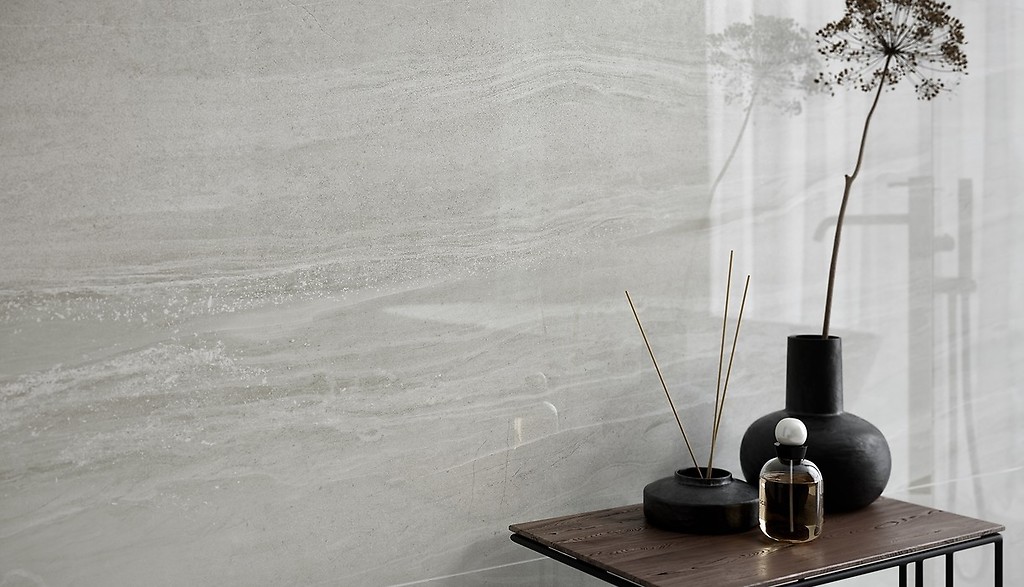 Łazienkę na wzór amerykańskiej możemy również efektownie urządzić podpatrując styl mieszkańców Nowego Jorku. W wielkomiejskich łazienkach klasyka częściej ustępuje miejsca modernizmowi. Formy wyposażenia są prostsze, a wzór kamienia na podłogach i ścianach subtelniejszy. Jeżeli chcemy odtworzyć klimat łazienki przy sypialni w apartamencie na Manhattanie postawmy na elegancki rysunek szarego kamienia wybierając gresy z kolekcji Distance Opoczno. Elegancja, harmonia, relaks, to skojarzenia jakie budzi ten wzór, dlatego świetne sprawdzi się w miejscach związanych z wypoczynkiem. Gresy w dużym formacie stworzą scenerię, w której efektownie zaprezentuje się wanna wolnostojąca o organicznym kształcie oraz ekskluzywne elementy wyposażenia. Takie jak umywalka w formie głębokiej misy, szykowna armatura w kolorze starego złota oraz designerskie oświetlenie. Kontrast zapewnią szafka podumywalkowa z ciemnego drewna oraz dodatki w eleganckiej czerni.