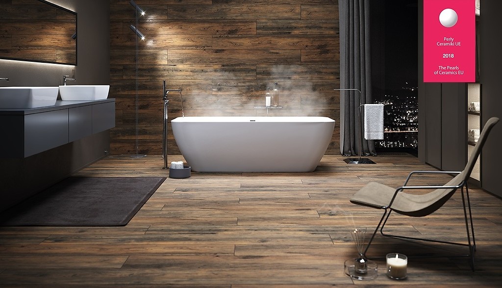 Jak urządzić łazienkę na poddaszu, aby nawiązywała do kameralnych salonów SPA, kojarzących się nam z relaksem i odprężeniem? Trzeba wnętrzu nadać ciepła, co uczynimy, wybierając np. płytki ceramiczne w kolorze naturalnego drewna. Umieszczamy je zarówno na podłodze, jak też na ścianie, kontrastując np. z czystą bielą, którą wyznaczamy jedną ze stref lub ponadczasową szarością. Wannę wolnostojącą uzupełniamy o akcesoria drewniane, jak np. nadstawka na wannę, która świetnie sprawdza się na dekoracyjne świece i lampiony, ale również kosmetyki kąpielowe, jak sól czy olejki eteryczne. Przytulnemu klimatowi sprzyjają też miękkie dywaniki oraz roślinne akcenty, zarówno naturalne kwiaty zielone w donicach, jak też botaniczne wzory na ścianach i akcesoriach łazienkowych.