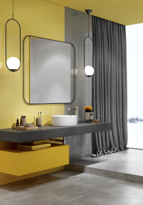 Płytki Monoblock Grey sprawdzą się jako aranżacyjna baza zarówno wnętrz nowoczesnych, jak i zaprojektowanych w klimacie retro czy vintage. Urządzający cenią efektowny i uniwersalny charakter odcieni szarości. Dlatego cieszą się one popularnością już od kilku sezonów. Z kolei żółte kafle Monoblock Yellow rozjaśnią i ożywią wnętrze, efektownie kontrastując z monochromatycznymi elementami aranżacji. Będą także stanowiły odważny, designerski akcent. Płytki w słonecznym kolorze można zastosować do wyróżnienia konkretnej strefy we wnętrzu lub wyeksponowania wybranego fragmentu ściany. W kuchni idealnym miejscem dla nich będzie ściana nad blatem roboczym, w łazience z kolei może to być ściana nad wanną lub w strefie prysznica. Fragment ściany nad umywalką wykończony płytkami w słonecznym kolorze to sposób na dobry początek każdego dnia. Ceramiczna kompozycja w kolorach roku 2021, stworzona z płytek Monoblock Grey i Yellow, będzie gustownie komponować się ze wszystkimi popularnymi materiałami stosowanymi we wnętrzach, czyli drewnem, kamieniem naturalnym oraz szkłem. Szare oraz żółte kafle można z powodzeniem łączyć z bielą oraz czernią, a więc barwami najchętniej stosowanymi we współczesnych aranżacjach.