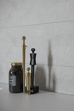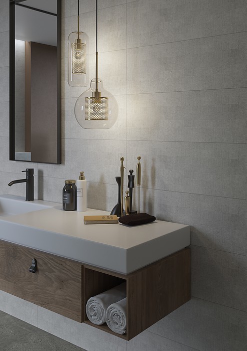 W soft lofcie z kolei – nowej kreacji w stylu industrialny – efekt betonu, cegły albo wysłużonych desek na ogół uzyskuje się w sposób prostszy i zarazem bardziej praktyczny w codziennym funkcjonowaniu. Dla przykładu, surowa betonowa ściana w sypialni byłaby trudna do odkurzenia; wykorzystanie wielkoformatowych płyt gresowych rozwiązuje ten problem. Propozycją mogą być płyty z kolekcji Opoczno Newstone, dostępne w kilku skorelowanych z sobą rozmiarach. Można wykorzystać je oddzielenie lub łącząc je np. tworząc za zagłówkiem łóżka awangardową geometryczną mozaikę. Wyraźnie widać w niej świadomą stylizację.