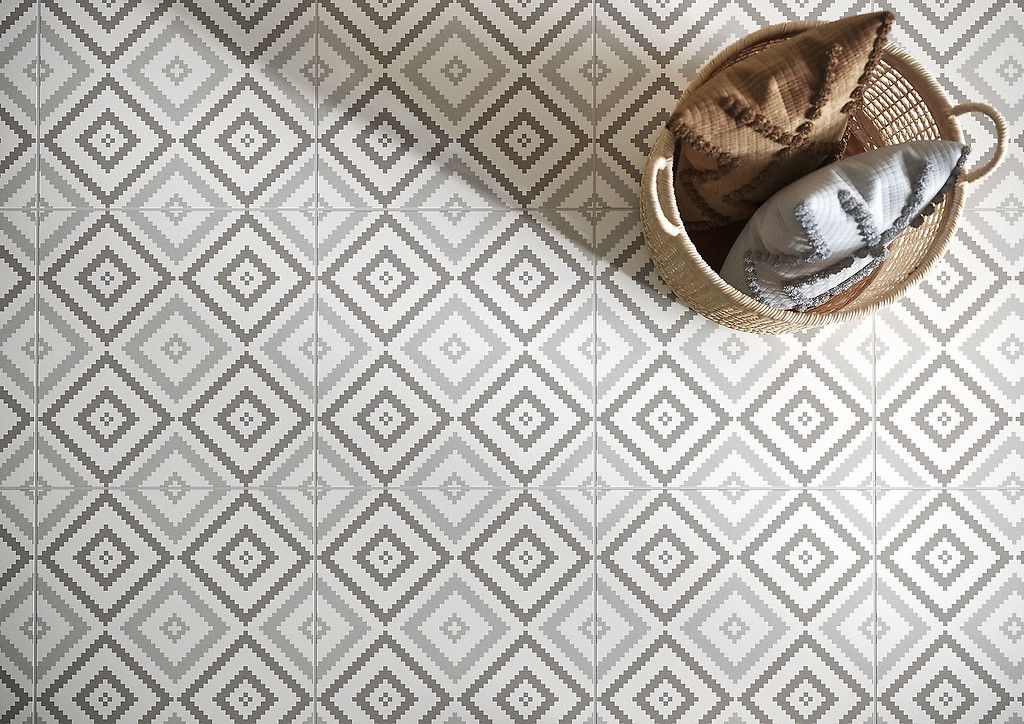 Mówi się, że niebieski to kolor marzycieli. Lekki oraz świeży wzór Patchowork Geometric Flower ożywi i ociepli wnętrze. Płytka utrzymana jest w kolorze złamanego błękitu, bieli i szarości. Florystyczna geometria wzoru oparta jest na rombach. Ten oryginalny motyw w stonowanej kolorystyce doskonale koresponduje z elementami drewnianymi czy klasyczną bielą ścian. Kolekcja stanie się główną ozdobą wnętrza i wprowadzi do niego energię, świeżość i ożywczy powiew. Stawiając na naturalne dodatki, z łatwością stworzymy wnętrze urządzone w duchu biophilic design czy bazujące na estetyce modern rustic.