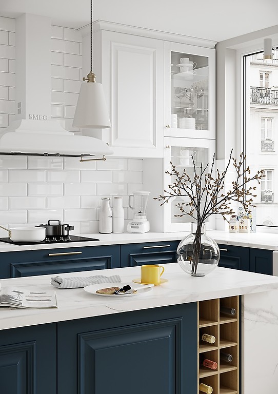 Kto marzy o jodełce również w kuchni, powinien sięgnąć po mozaiki z kolekcji Love You Navy white. Ściana nad blatem to doskonałe miejsce, aby wyeksponować ten urokliwy i ponadczasowy deseń. Na podłodze możemy ułożyć w klasyczną jodełkę gresy Grand Wood Rustic w odcieniu light brown. I nic nie stoi na przeszkodzie, aby takie okładziny stanowiły bazę nowoczesnej kuchni z okazałą wyspą i prostą zabudową w odcieniach bieli i szarości, z gładkimi, lakierowanymi frontami. W kuchni urządzonej w przytulnym stylu vintage jodełka czuje się równie dobrze. W towarzystwie zabudowy ze stylowymi ramkowymi frontami i dekoracyjnymi uchwytami oraz gładkich kafli na ścianie nad drewnianym blatem znakomicie zaprezentują się jasne płytki Wood Chevron ułożone we wzór jodełki angielskiej.