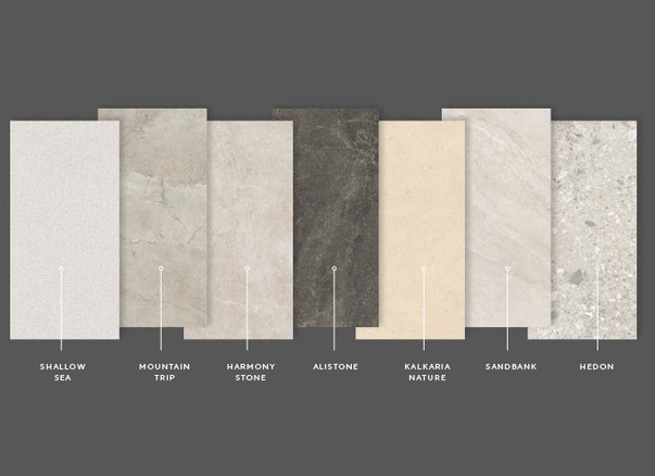 O ponadczasowym pięknie kamienia nie trzeba nikogo przekonywać. Ma on jednak rozmaite oblicza: począwszy od drobnych żwirowych kamyków w kolekcji Hedon, poprzez kojący ciepły kolor serii Kalkaria Nature oraz delikatny rysunek reprezentowany przez kolekcje Shallow Sea, Mountain Trip, Harmony Stone, Sandbank, na intensywnym wzorze zatopionym w czerni serii Alistone skończywszy. Nowe gresy inspirowane naturalnym kamieniem to siedem unikalnych kolekcji.