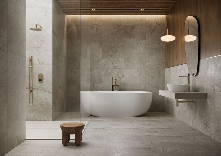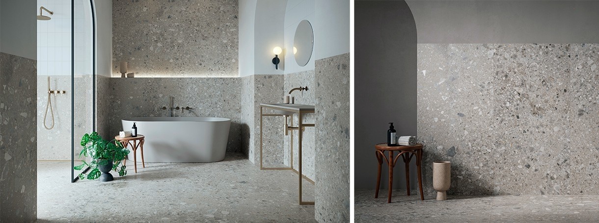 Nowe kolekcje gresów oferowanych w ramach Grand Concept to design prosto z natury. Kolekcje płytek ceramicznych o przeróżnych grafikach kamienia czerpią inspiracje z natury. Znajdziemy tu zarówno, grafiki oparte na rysunku kamienia typu bluestone, o charakterze terazzo, wapienia, górskiej skały, a nawet piasku. Koncept dopełniają wzory betonu w lekkim minimalistycznym wydaniu oraz w odcieniach szarości rozświetlonych połyskiem. Grafiki przyciągają wzrok perfekcyjnymi wzorami kamieni, a dodatkowo wyróżniają się wyjątkowymi, nowymi powierzchniami typu soft touch: soft mat, lappato mat, satyna są przyjemnie miękkie w dotyku. Płytki ceramiczne do łazienek, kuchni ale też holi i salonów.