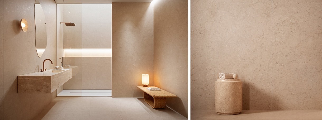 Natura w swojej ciepłej odsłonie. Kolekcja ta urzeka łagodną, utrzymaną w beżach kolorystyką, która pulsuje kojącymi wrażeniami zmysłowymi. Wybłyszczenia na powierzchni płytek rozświetlają dodatkowo przestrzeń ożywiając ją i uszlachetniając. Delikatna struktura jest przy tym źródłem przyjemnych odczuć dotykowych. Kalkaria Nature pozwala stworzyć we wnętrzu relaksującą atmosferę, a jej uniwersalny charakter sprawia, że jest dobrym tłem dla wielu stylów aranżacyjnych.