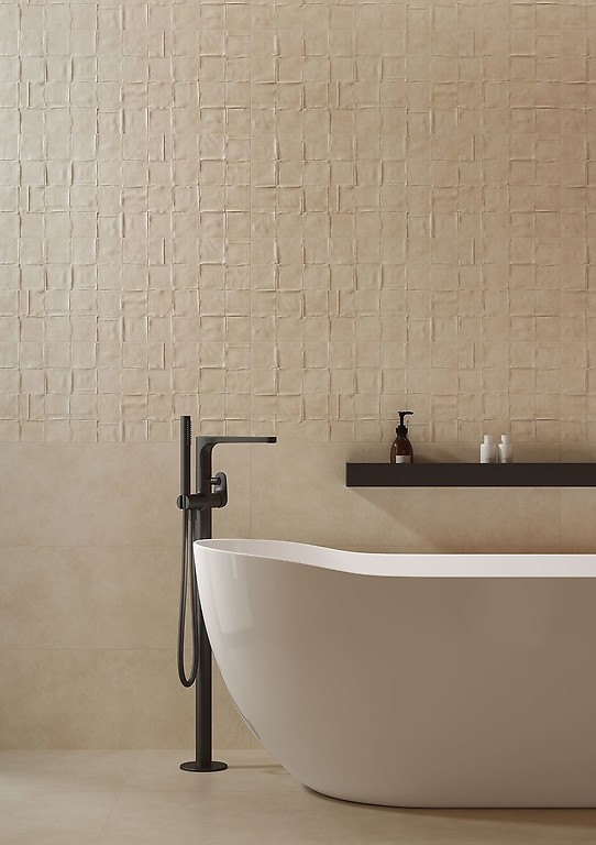 Kolekcja TRIASSO to harmonijna kompozycja, która wzoruje się na naturalnej i stonowanej odsłonie cementu. Bazowa grafika przedstawia delikatne, beżowe kwadraty zastygłe na ciepłym, beżowym tle. Kolekcję docenią miłośnicy dobrego smaku i elegancji, którzy preferują kolorystyczny minimalizm. Z kolekcją Triasso możliwe jest zaprojektowanie spójnego i uspokajającego wnętrza w nowoczesnym, monochromatycznym stylu, które jest ograniczone do beżowej kolorystyki. Płytkę bazową Triasso uzupełnia płytka strukturalna w tym samym formacie i kolorze oraz gres, który dodatkowo wzmocni mono look we wnętrzu. Nieco kontrastu dodadzą przestrzeni dodatki w stonowanych kolorach o zróżnicowanej fakturze czy armatura w kolorze czarnym, które wspaniale zaprezentują się na ciepłym, matowym tle.