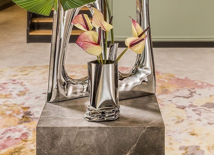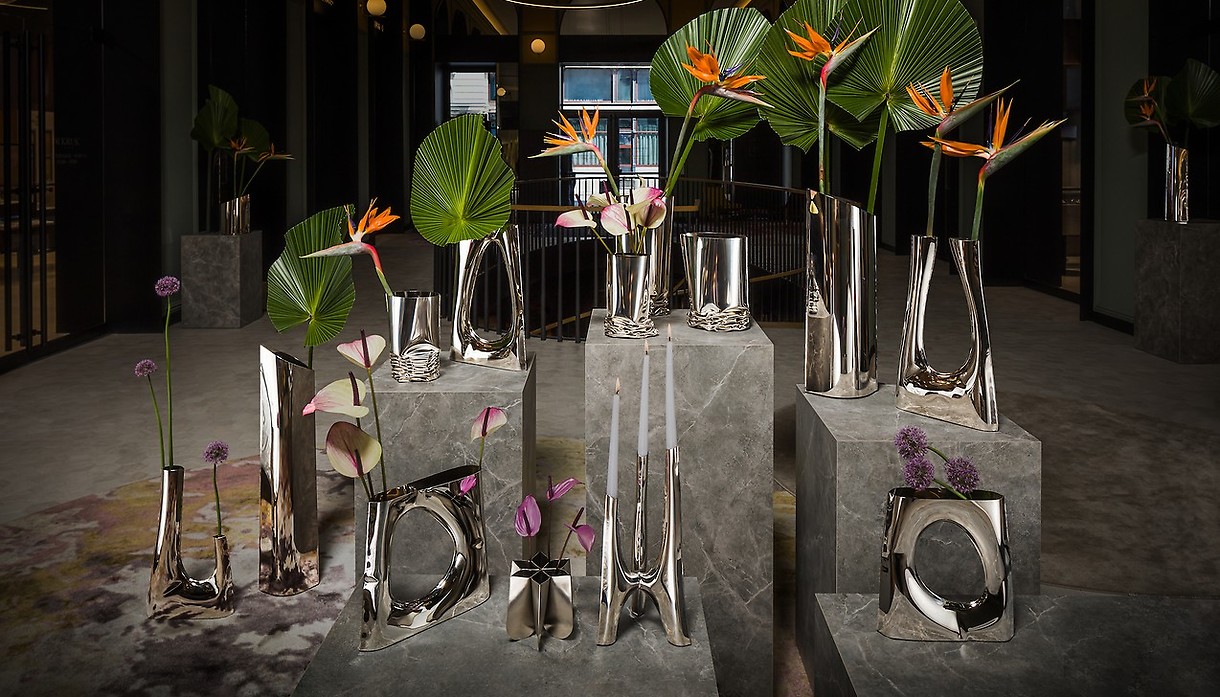 W gościnnych przestrzeniach warszawskiego HE Concept Store oraz w pasażu Hotelu Europejskiego prezentowane są właśnie najnowsze prace Oskara Zięty, artysty, projektanta procesów i architekta. To nowoczesne wazony, które w efekcie formowania stali powietrzem pod ciśnieniem zyskały rzeźbiarskie, organiczne kształty. Błyszcząca stal zestawiona z wielobarwnymi roślinami to metafora współistnienia technologii i natury w twórczości Zięty. Rozkwitanie i wzrost, czyli zmiana gabarytów określana przez Oskara Ziętę jako ekspansja wolumetryczna, to codzienność technologii FIDU - metody obróbki stali wykorzystywanej przez tego wszechstronnego projektanta w tworzeniu designu i sztuki.