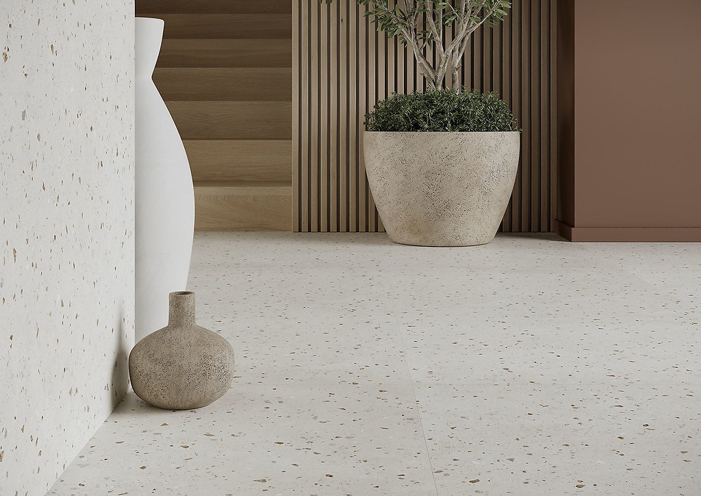 A może by tak zaczerpnąć inspiracji od naszych duńskich znajomych i wprowadzić do salonu styl hygge? Jego największą wartością jest rodzina, przytulna przestrzeń i miejsce, w którym można rozkoszować się ciepłą atmosferą. Wedle tej idei, wokół kominka gromadzą się wszyscy domownicy, najlepiej więc, aby był on otwarty, dzięki czemu doskonale słychać trzask palącego się drewna. By odpowiednio zabezpieczyć podłogę przed kominkiem i utrzymać w pokoju styl hygge, wkomponujmy w pomieszczenie płytki do salonu Newstone White. Na ścianę wokół kominka wybierzmy natomiast płytki Newstone Light Grey. Ich jasne kolory doskonale będą współgrać z nastrojowym światłem bijącym od ogniska, co jest niezwykle ważne w duńskim stylu.