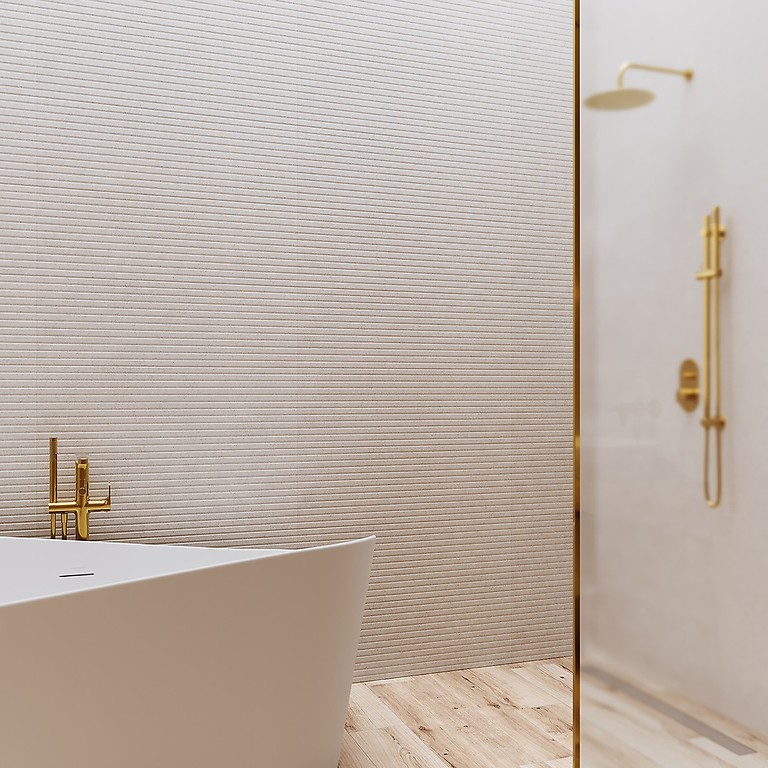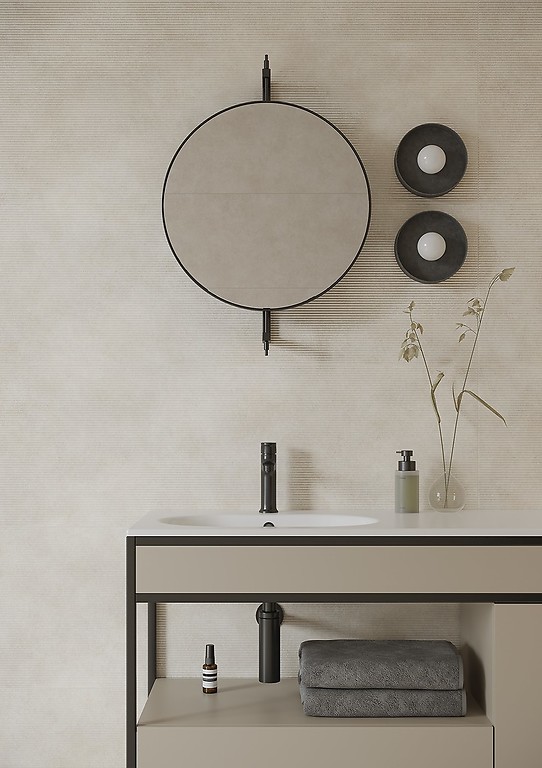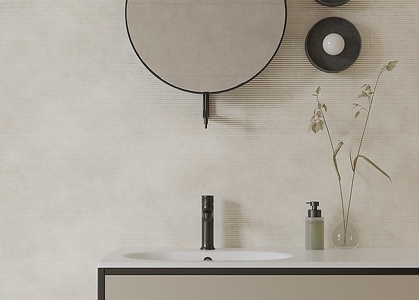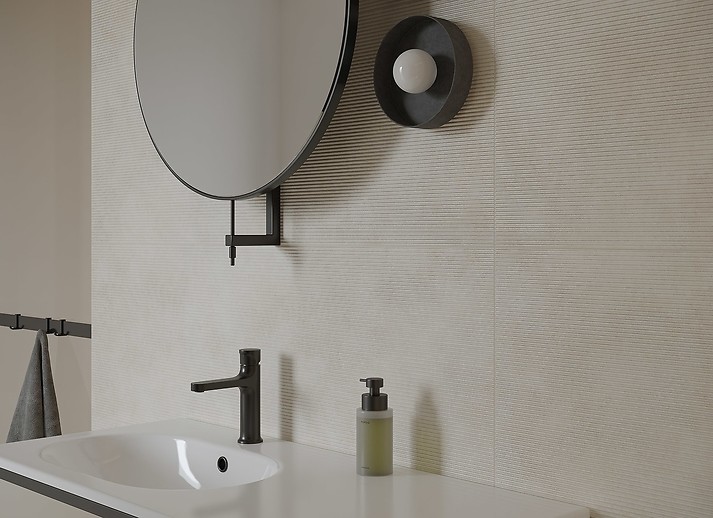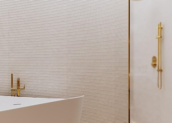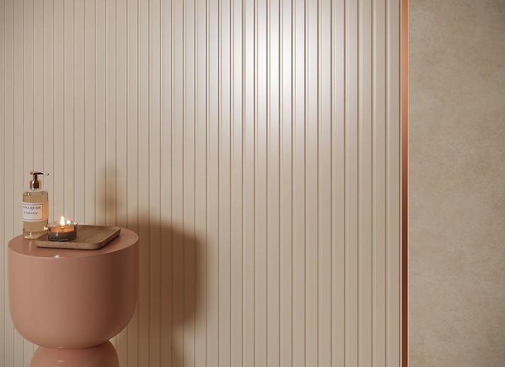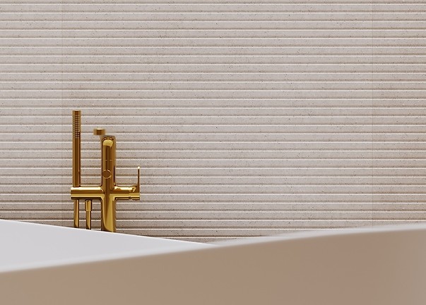 TOSSA to strukturalne płytki ścienne, w postaci wąskich, wypukłych pasów. Delikatna i subtelna struktura lameli w beżowym odcieniu doskonale wpasowuje się w monochromatyczne wnętrza. Matowe wykończenie produktów dodatkowo uwydatnia kamienną naturę płytek. Sprawdzą się zarówno jako centralny punkt aranżacyjny w łazience lub w salonie, ale także będzie stanowiła doskonałą bazę dla wnętrzarskich eksperymentów, zwłaszcza że płytki doskonale komponują się z drewnem, kamieniem i szkłem, a także z kolorowymi elementami.