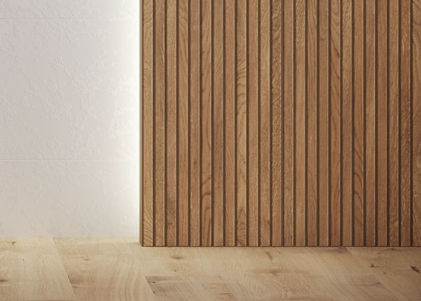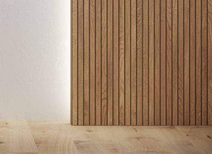 Kolekcja BOSTON WOOD to doskonały wybór dla tych, którzy pragną wprowadzić do swojego wnętrza ciepły, naturalny klimat. Unikalna struktura lamelowa płytek nadaje pomieszczeniom ciepły i przytulny wygląd, przypominając naturalną fakturę drewna. Dzięki nim można stworzyć wnętrza o wyrazistym charakterze, które będą emanować elegancją i przytulnością. Płytki te doskonale komponują się z nowoczesnymi meblami oraz dodatkami w stylu japandi, tworząc harmonijną i przyjemną przestrzeń do mieszkania. Mogą zostać zamontowane na całej ścianie lub tylko na jej fragmencie, wnosząc do wnętrza harmonię i spokój.