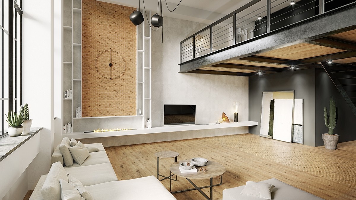 Elegancki salon z betonem w tle