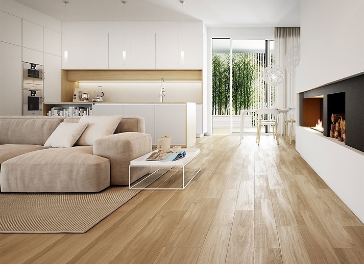 Powodów niesłabnącej popularności stylu skandynawskiego jest wiele. Polacy cenią monochromatyczne barwy (głównie biel i szarości), kochają prostotę i funkcjonalność. W jasnych przestrzeniach rewelacyjnie zaprezentują się płytki inspirowane urodą subtelnego jesionu z kolekcji Natural Ash. Ciepły odcień beżu i delikatny rysunek słojów będą przyjemnie harmonizowały z neutralną skandynawską stylistyką. Płytki dostępne są w dwóch formatach (15x90 i 22x90cm). Jasne barwy, dekoracyjna oszczędność oraz duża ilość światła dziennego powiększą optycznie pomieszczenie. A układając płytki na przylegającym do salonu tarasie uzyskamy dodatkową przestrzeń wypoczynkową. Uniwersalny charakter tej kolekcji sprawia, że płytki sprawdzą się zarówno w salonie, jak też sypialni czy łazience.