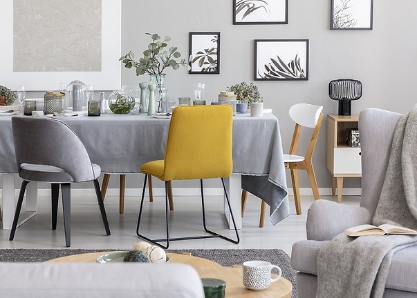 W skandynawskich aranżacjach próżno szukać odważnych połączeń kolorystycznych. Dominują tu jasne, inspirowane północną naturą barwy – szarości, złamane biele, ciepłe beże i chłodne błękity. To one dodają wnętrzu lekkości i optycznie je powiększają, sprawiając że nawet niewielki pokój dzienny wyda się bardziej przestronny. Wyważone połączenie szarości i bieli sprawi, że salon będzie wyglądał świeżo i subtelnie, a my z przyjemnością spędzimy w nim popołudnie z kubkiem herbaty i książką. Jeśli do naszego wnętrza postanowimy jednak wprowadzić nieco więcej ekstrawagancji, styl skandynawski będzie doskonałą bazą do aranżacyjnych eksperymentów. Pomalujmy jedną ze ścian mocnym kolorem lub postawmy na zdecydowane dodatki. Czerwone poduszki, żółte ramki zdjęć lub butelkowozielona ceramika wprowadzą do salonu nieco energii, ale nie zaburzą ducha skandynawskiej prostoty.