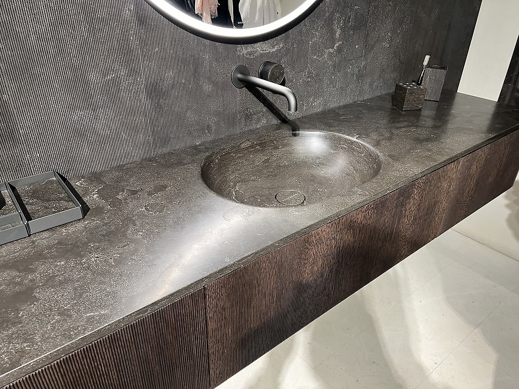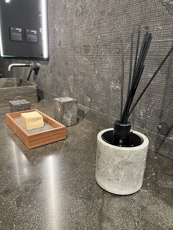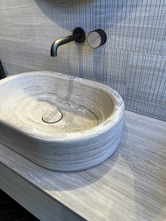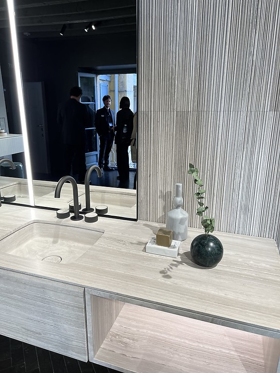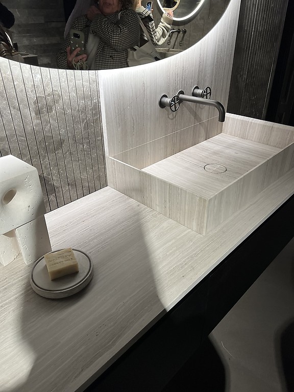 Trawertyn to naturalny kamień, który zyskuje na popularności - na targach pojawiał się na wielu stoiskach i aranżacjach. Coraz częściej pojawia się we wnętrzach, jako inspiracja do tworzenia pięknych wnętrz. Jego ciepłe, naturalne odcienie oraz charakterystyczne żyłki dodają elegancji każdemu pomieszczeniu. Płytki imitujące trawertyn mogą być stosowane zarówno na ścianach, jak i podłogach, tworząc harmonijną i spójną aranżację.