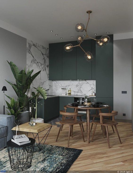 Innym zauważalnym trendem w nadchodzącym roku jest wybór głębokich, nasyconych zieleni i granatu. Te na pozór ciemne i przytłaczające barwy niosą w sobie duży zastrzyk elegancji i ponadczasowego piękna. Choć nie należą do łatwych i oczywistych wyborów (wciąż dosyć sceptycznie podchodzimy do decyzji o ciemnym wnętrzu), odpowiednio skontrastowane, zaskakują swoją świeżością i niewymuszonym stylem. Idealnie komponują się z klasycznym odcieniem drewna jak w kolekcji Opoczno Grand Wood Rustic, a szukający nieco luksusu powinni zestawić je z płytkami imitującymi drogie marmury na przykład Grand Stone Calacatta Marble.