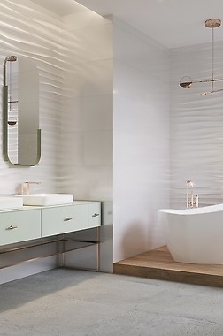 Lustro w łazience nie musi być tylko nad umywalką i nie tylko w klasycznym rozmiarze. Wielkoformatowe lustra optycznie powiększają wnętrze, nadają mu elegancji, ale też są praktyczne, możemy w nich zobaczyć całą naszą sylwetkę.