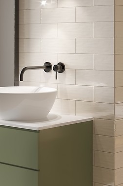 Potraktujemy drewno jako głównego bohatera w łazience, ale nie jedynego. Obok niego stanie oczywiście szarość, w takim duecie będą się wzajemnie uzupełniać. Szare płytki, zarówno z efektownym połyskiem, jak też w matowej wersji imitującej beton układamy na ścianie, drewnopodobne kafelki pojawiają się na podłodze. Ciekawy efekt uzyskamy, jeżeli drewno będzie na ścianie, a szarość na podłodze. W takiej stylizacji świetnie odnajdują się białe meble i klasyczna ceramika. Chcąc podkreślić bardziej nowoczesny klimat wnętrza, dopełniamy całość czarną armaturą