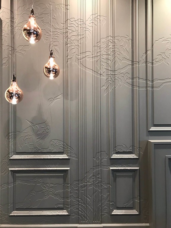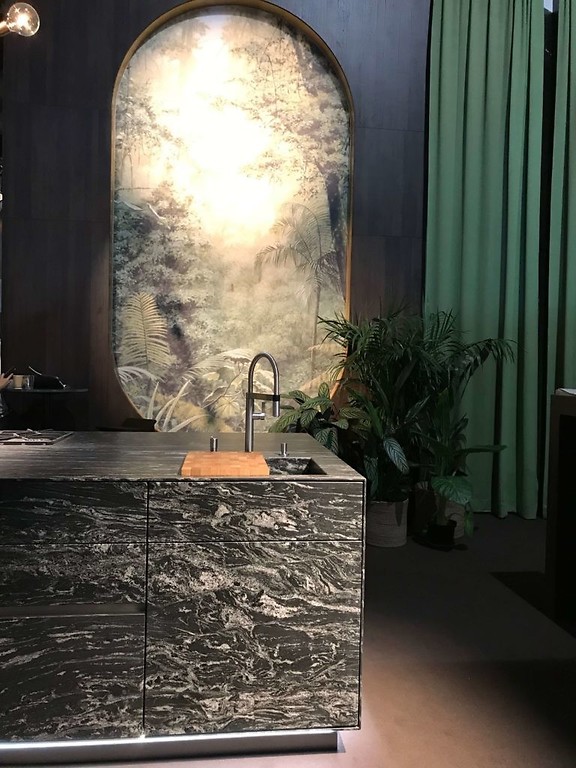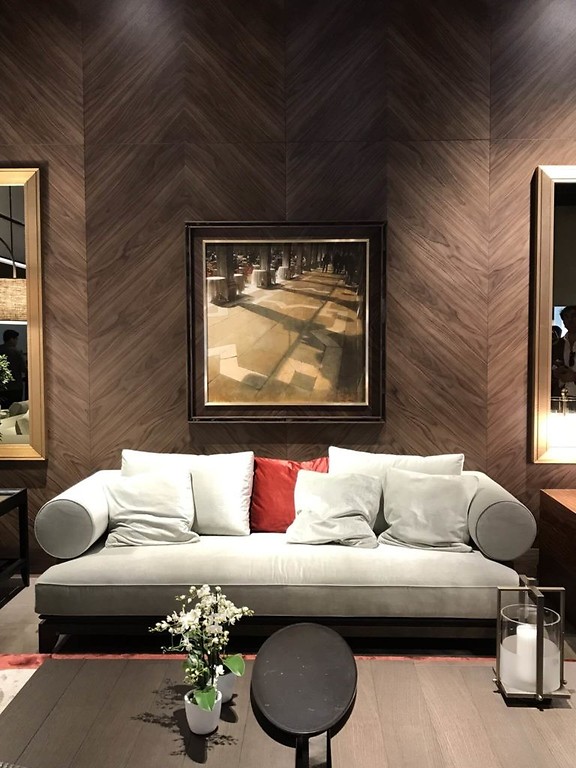 Pierwsze co rzucało się w oczy w czasie tegorocznej edycji targów, to wszechobecne królestwo tkanin. Miękkie w dotyku, aksamitne, przytulne materiały pokrywały nie tylko meble, ale również podłogi, ściany a nawet sufity. Często zestawione z chłodnym dotykiem kamienia lub egzotycznym drewnem. Samo drewno w ciemnym, nieco rustykalnym wydaniu było niezaprzeczalnym zaskoczeniem i świeżym trendem, który pojawił się w kontrze do bardzo popularnego dębu i jesionu. Nie dało się nie zauważyć, że większość aranżacji przedstawionych w Mediolanie utrzymanych było w ciemnym, nastrojowym i bardzo eleganckim klimacie. Odważne, nasycone kolory na ścianach były idealnym tłem do wyeksponowania nowych ciekawych barw jak pudrowy róż, oranże, szałwiowa zieleń, granaty. To co szczególnie zaskoczyło, to aranżacje łazienek. Tu kolor wkroczył nie tylko w postaci płytek, ale przede wszystkim w odejściu od typowo białej ceramiki i armatury. Coraz więcej producentów zaproponowało w swojej ofercie umywalki, wanny, miski toaletowe oraz baterie w kolorze pudrowych pasteli lub grafitowych, mocnych wykończeń. Prawdziwą wisienka na aranżacyjnym torcie był błysk i ponadczasowa elegancja złota i miedzi. Szlachetne metale były zachwycającą biżuterią, której połyskliwość dodawała sznytu i klasy w niezwykle wysmakowanych wnętrzach.